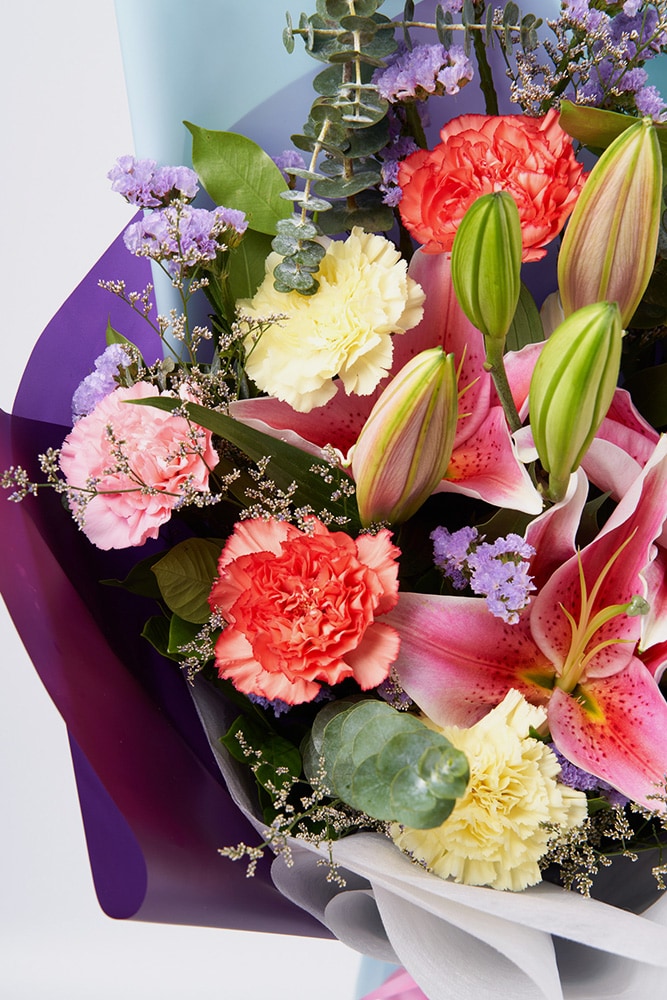 ‘Make Me Blush’ is made with Carnations and Lilies.