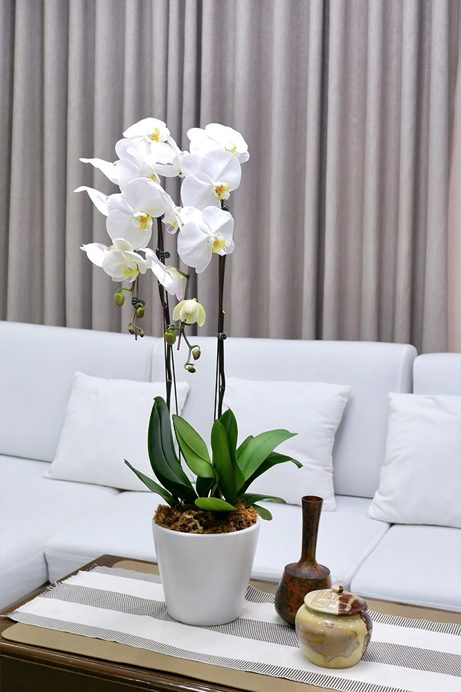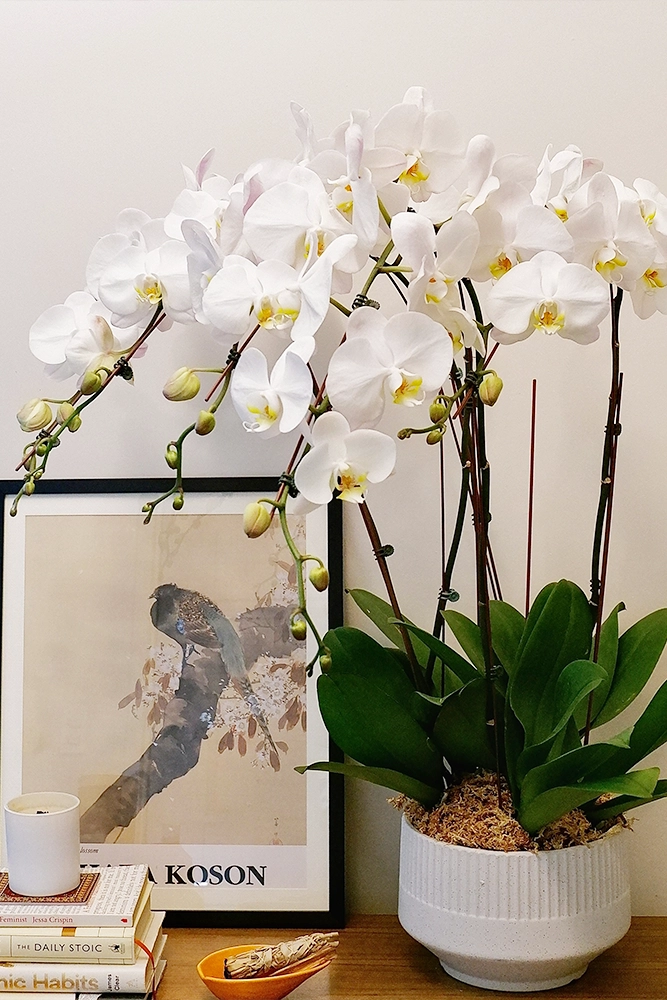 Opulence is a modern white orchid arrangement available in 1 to 4 elegant stalks.