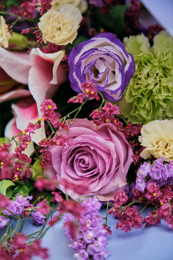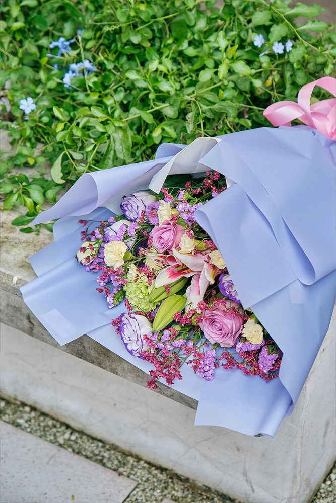 Petal Poetry is a vibrant mix of colors to make the occasion bright. Made up of Stargazers, Roses, and Carnations.